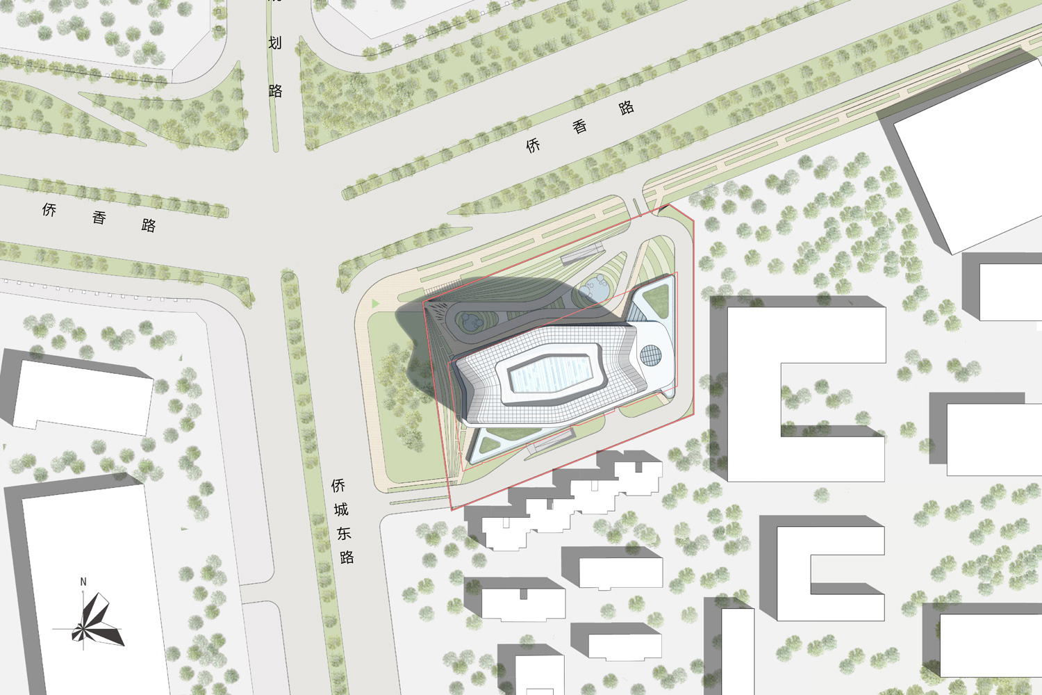 Located north of Shenzhen Bay and 7 kilometers northwest of the Shenzhen CBD, the corner site represents a strategic urban position similar to a hinge or pivot, since the location is a transition point from the Futian district on the east, to the Nanshan district on the west. It is a significant node as one travels north along QiaoXiang Dong Road from Shenzhen Bay, through the OCT and Zhuzilin areas, and the mountains north of QiaoXiang Road.