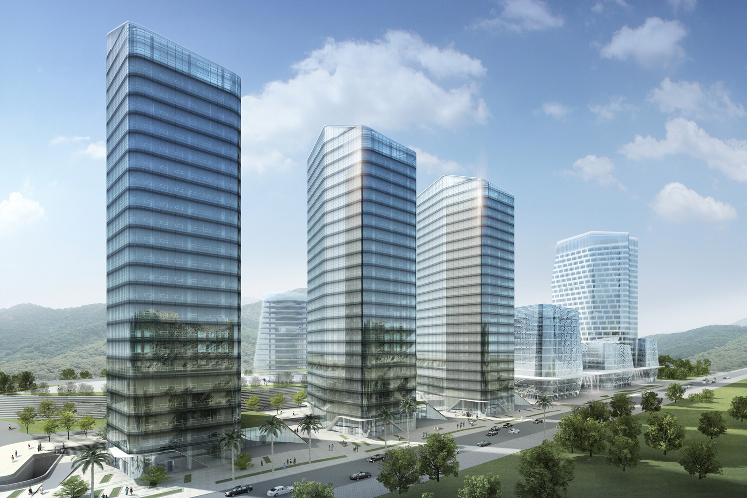 Located within the rapidly developing Nanshan Dashahe Innovation Corridor in Shenzhen, the project design comprises R&D office and light manufacturing, IT incubator space, outsourcing facilities, and business support services within a total building area of 628,000 sm on a 15.2 hectare site. The design concept was awarded 1st prize in an international design competition.