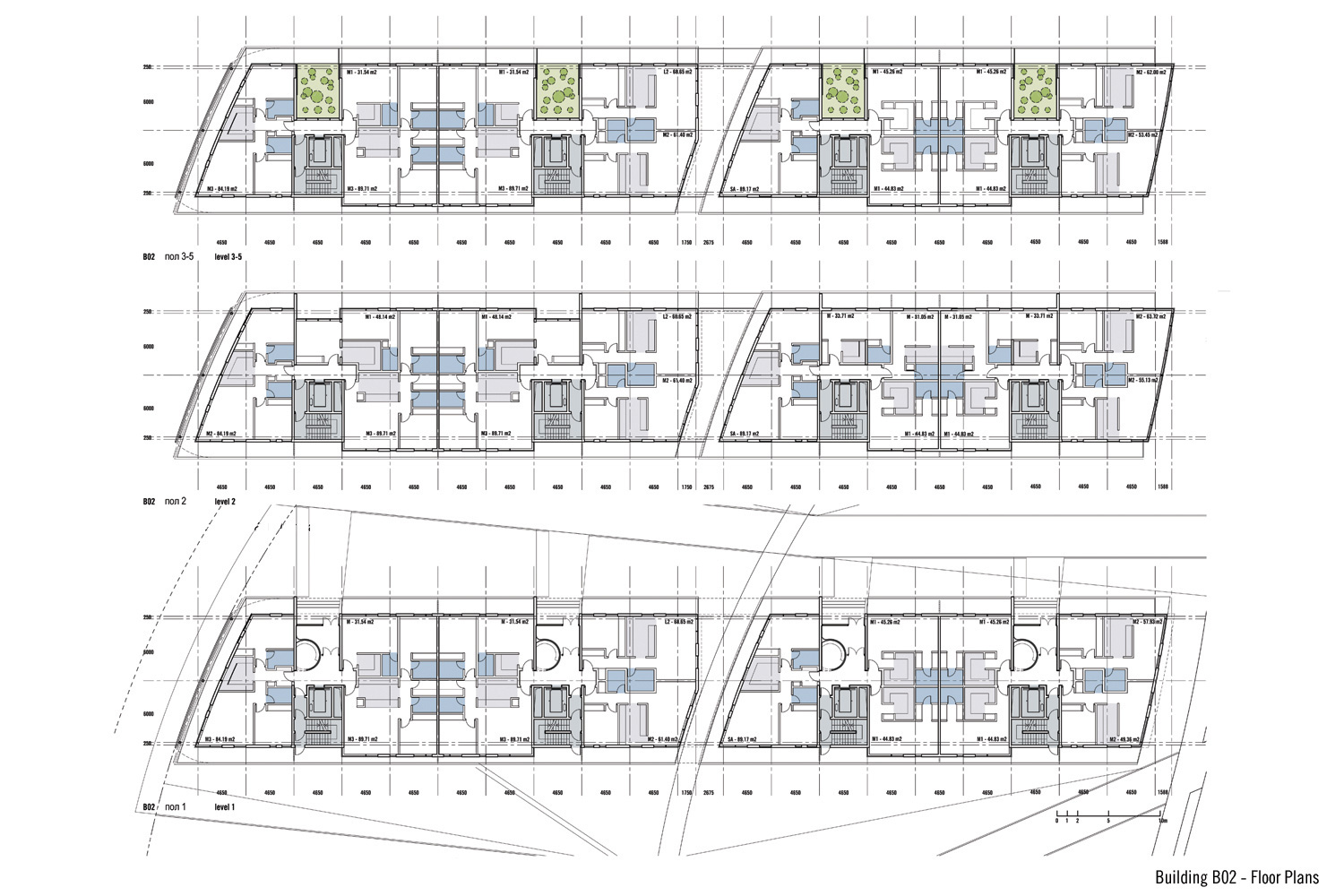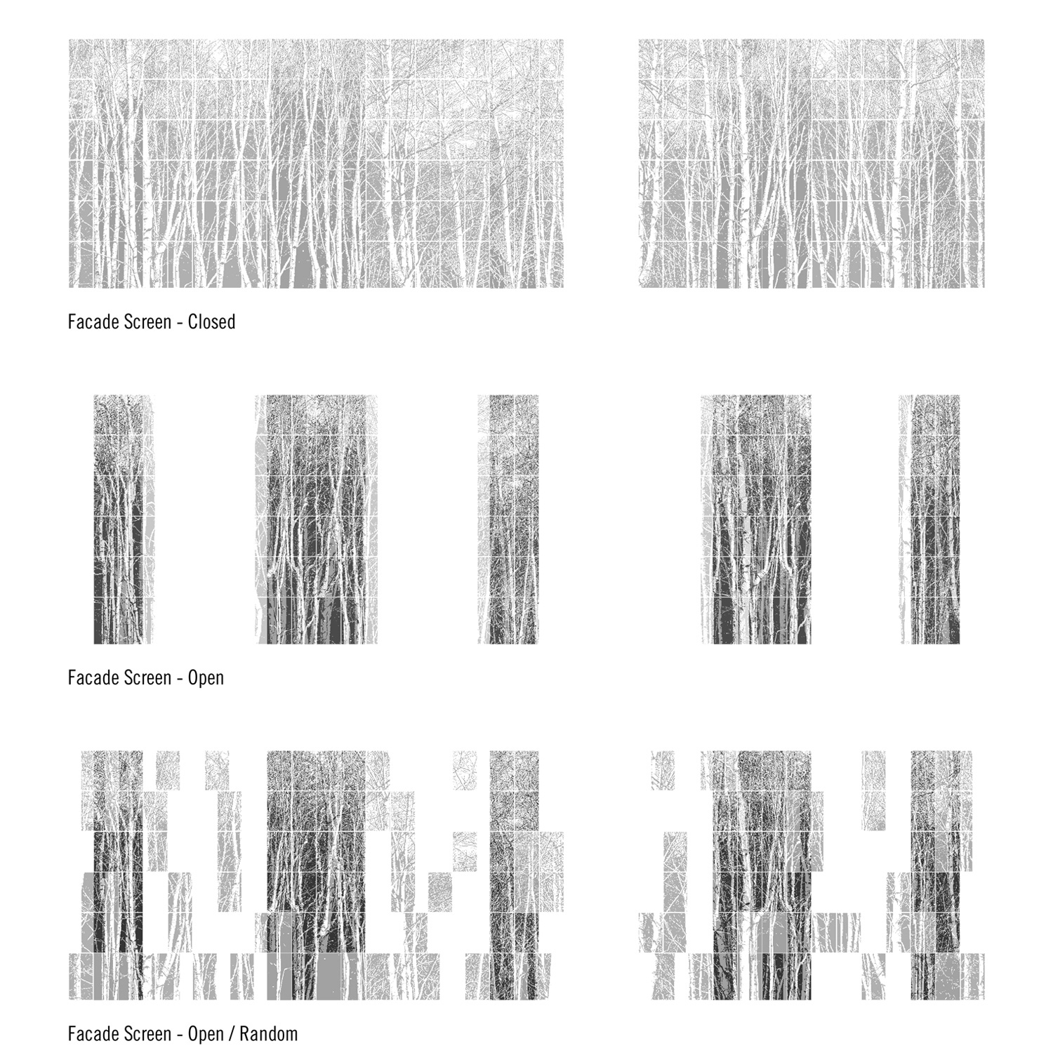 Comprising 45,900 m2 of building, the residential program envisions around 500 units accommodating nearly 1200 people. Dwelling units vary from innovative 1 and 2 room studios, to private multi-bedroom units. Ranging from 30 m2 to 110 m2, apartments are dispersed in various combinations to meet the desired program or unit category leasing strategy and to avoid social segregation. Dwellings feature extensive daylighting along with accessible continuous balconies, which respond to climate and privacy demands. The terraces can be variously enclosed through sliding glass screen walls integrating a screen print image of forest – furthering an architectural dialogue with nature.