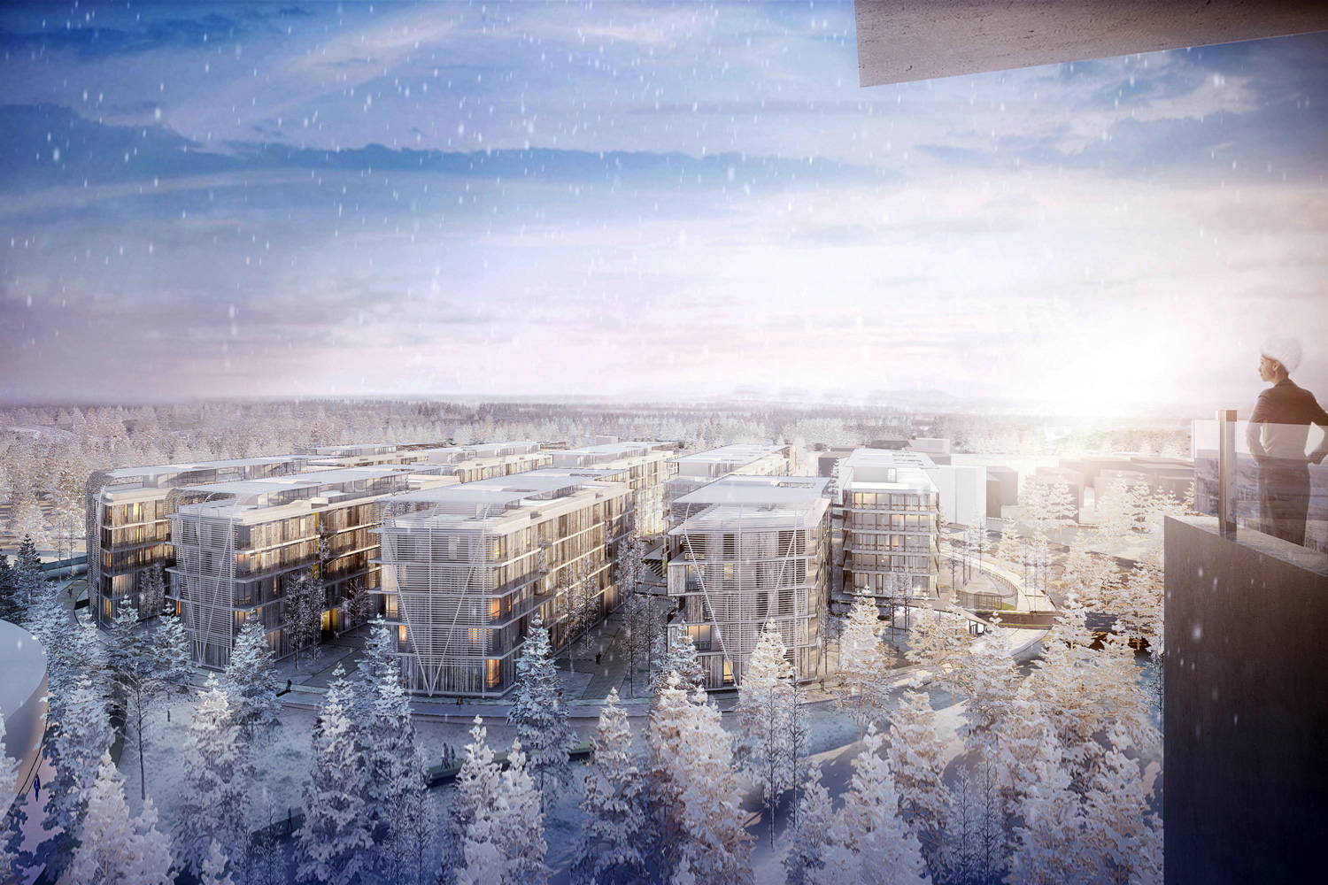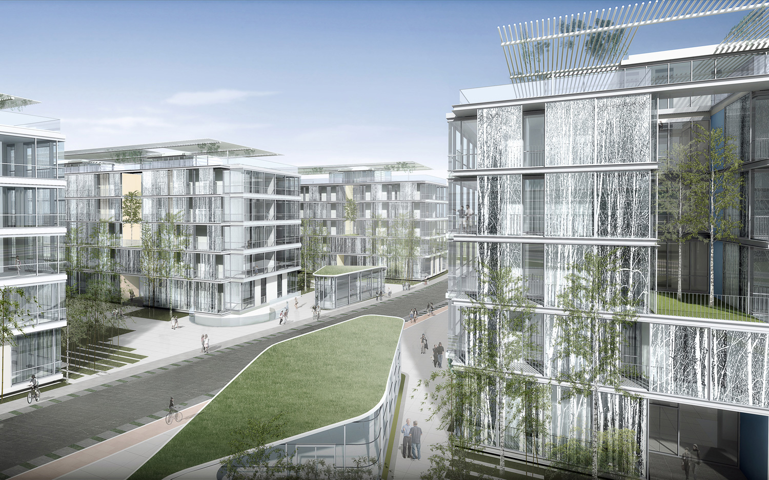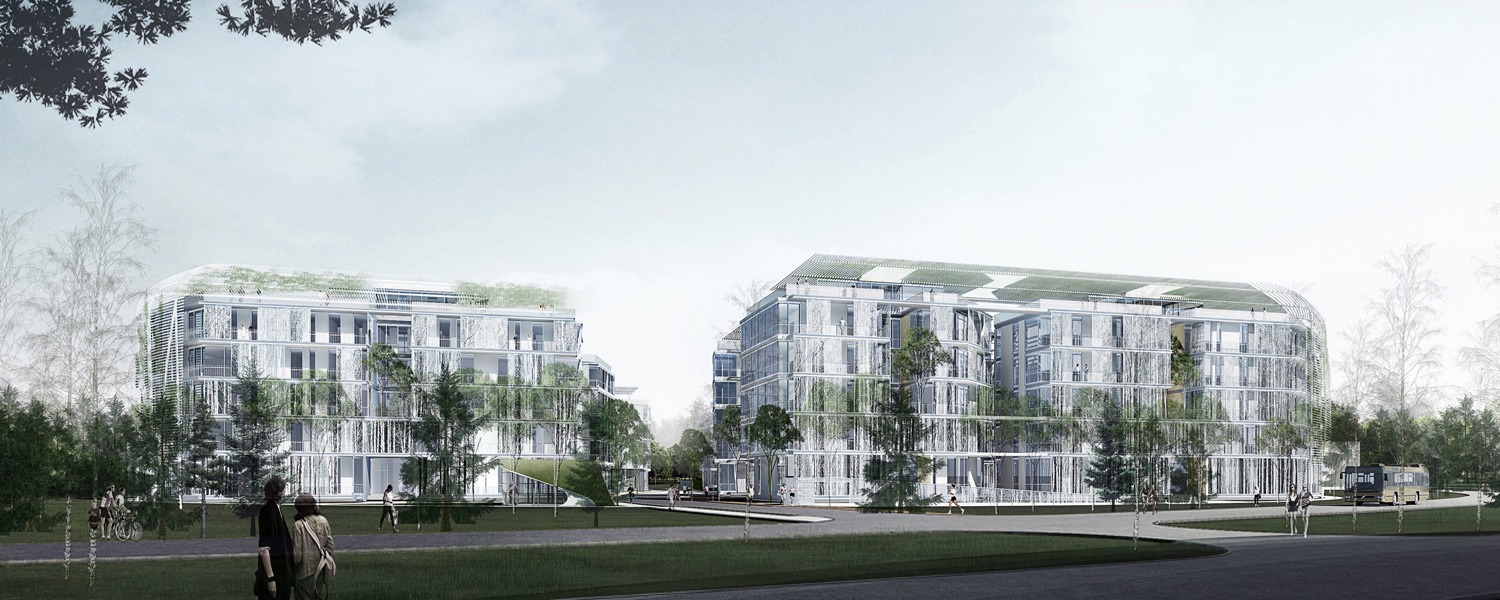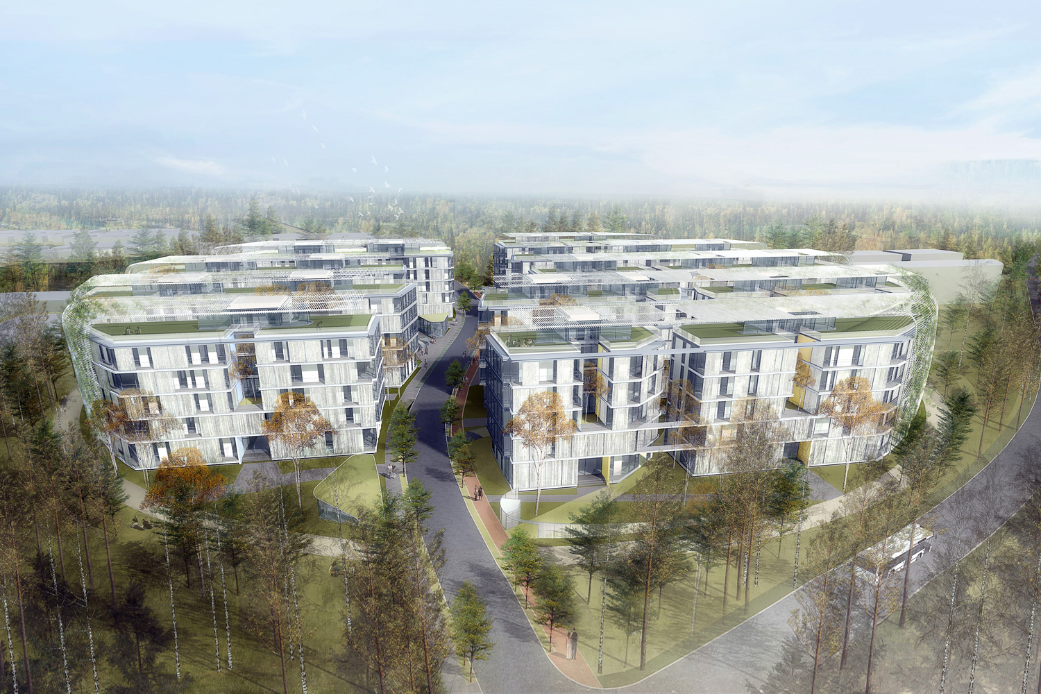 居民区项目总建筑面积45,900平方米,预计将为1200名居民提供共500多套住房。房屋样式包括1室或2室的工作间,或者是私人多居室公寓。房屋面积从30平方米到110平方米。为了实现项目效果、实施房屋分类出租策略和避免社会群体隔离,房屋被分布在不同的房屋群组合之中。居民住宅有着优良的采光和方便的连续式阳台,同时也考虑了气候和对住户隐私的保护。通过滑动印有森林图案的玻璃墙,露台可以以多种方式开闭——这实现了建筑与自然更为进一步的接触。