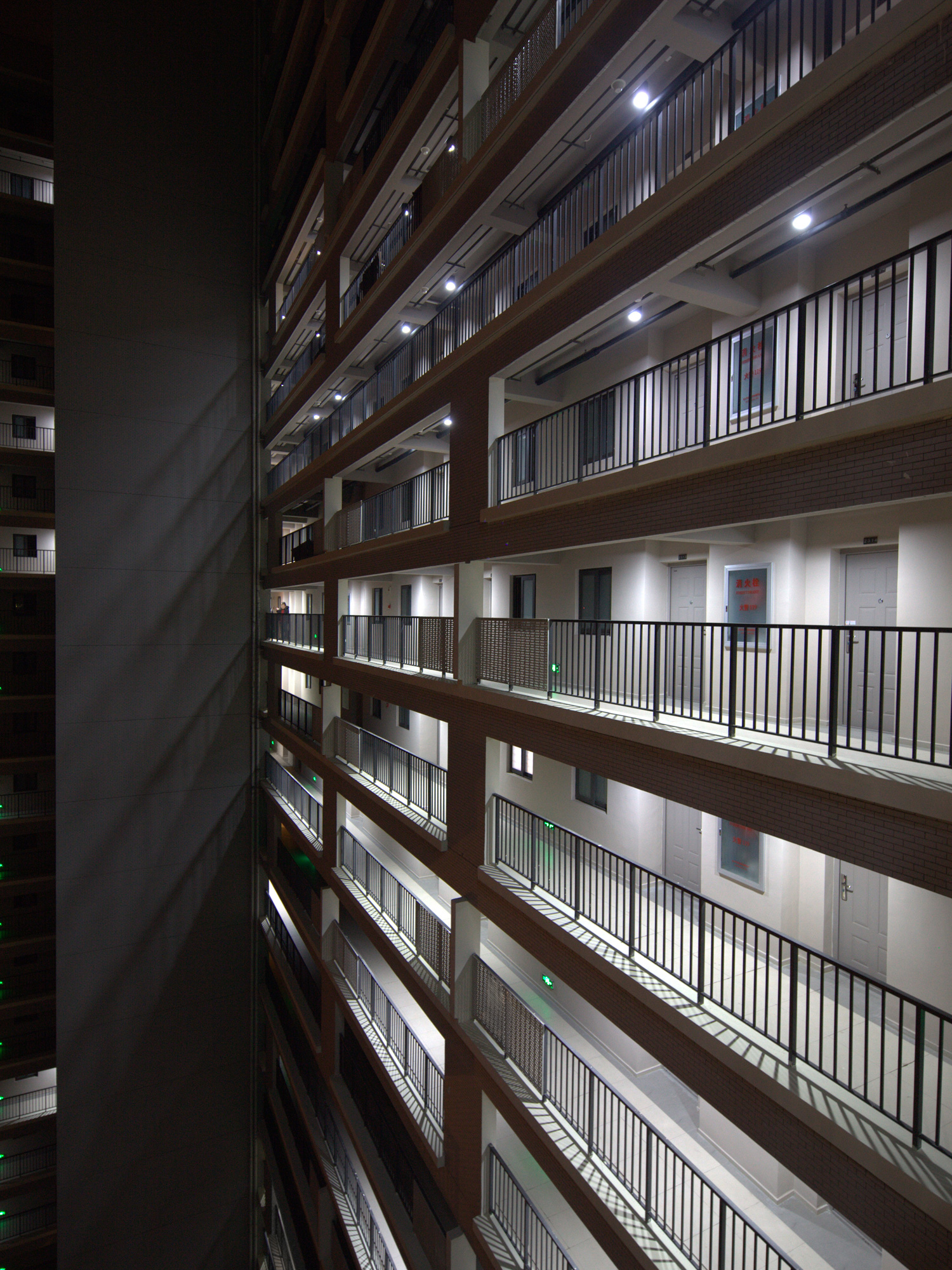由于客户规定的平面图产生出一个根本上乏味的立面, 立面上没有突出的不同的几何变化。 我们的立面设计在潜移默化中通过使用图案,材质,色彩和阴影的变化来突出立面的层次感和特殊性。住宅塔楼的立面在视觉上按着每6个楼层为一组的具有较大的外观特征的形式,然后在每一组中再进一步细分成一个交替横向模式每隔一层变化的格局。色彩被提供在塔楼上的特定位置,沿着贯穿整个塔楼高度的竖直条带,成为在每个六层分组模式的垂直视觉连接纽带。
